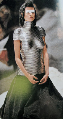 I took some photos from the book Extreme Beauty, The Body Transformed a month ago. I'm studying fine art embroidery this fall. My assignment is to look at clothing and consider gender issues. The above is a design by Alexander McQueen. A month ago I thought I was interested in how women's clothing through the centuries and across continents restricted movement. Now, after three weeks in the real world of maternity and family my interests have become more personal. I'm interested in what happens to young women when they begin their families. I'm interested in the unwritten expectations our society has for older women.