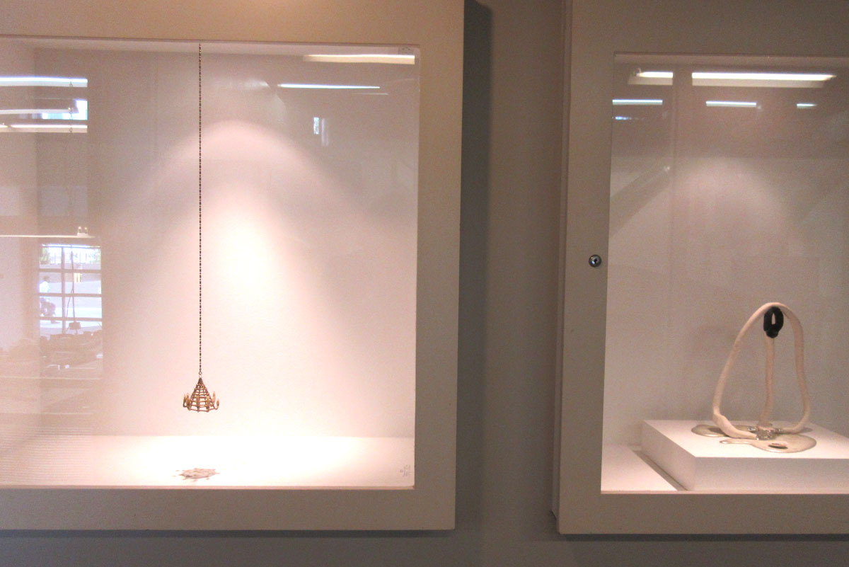 The objects are whimsical hand made treasures created from solid materials that, like humans, change from within through experiences.